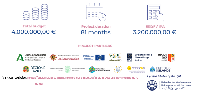 Projekat Dijalog za turizam podržan je kroz INTERREG Program Tehničke podrške Mediteranskom transnacionalnom programu 2021-2027 (Euro-MED), kao jedna od misija za unapređenje održivog turizma u mediteranskom evropskom području.