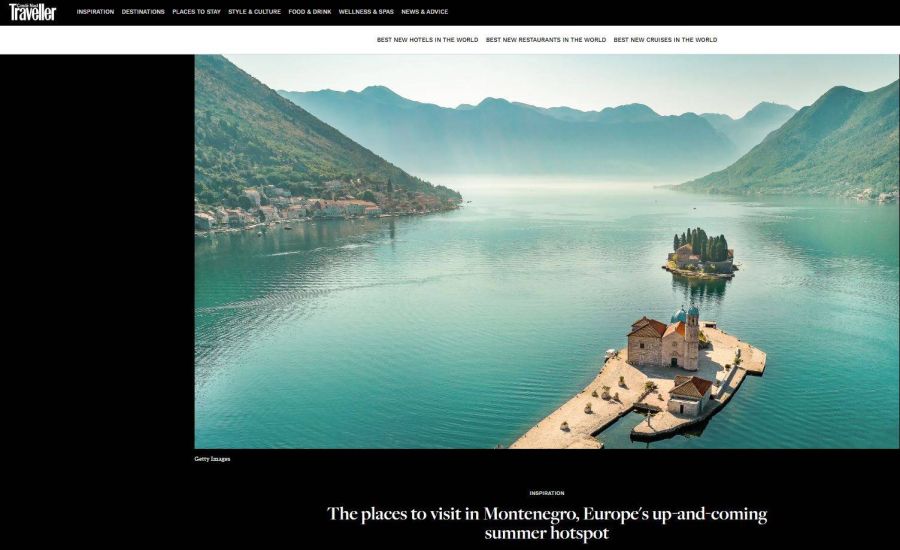 Članak o Crnoj Gori objavljen je i u prestižnom magazinu Conde Nast Traveller, kao rezultat studijske posjete britanske novinarke Ruby Deevoy u organizaciji NTO CG. U tekstu se Crna Gora opisuje kao zemlja koja spaja netaknutu prirodu i bogato kulturno nasljeđe sa savremenim sadržajima i luksuzom, a istovremeno pruža autentično iskustvo i mir daleko od masovnog turizma.
